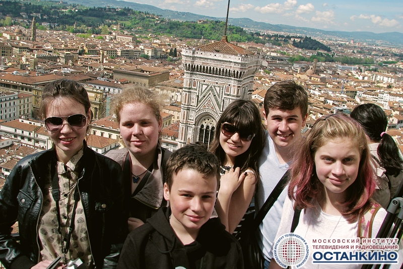 15.05.2013 - Учащиеся Детской Академии «Останкино» путешествуют по мируВ конце апреля состоялась очередная поездка учащихся Детской Академии «Останкино» за пределы нашей страны. В этот раз юные академики посетили солнечную Италию. За семь дней путешествия ребята, вместе с руководителем Академии Татьяной Сергеевной Ярец, объехали Римини, Венецию, Флоренцию и, конечно, Рим - «Город семи холмов». Они побывали на местах археологических раскопок, посмотрели на Флоренцию с высоты кафедрального собора Санта-Мария дель Фьоре и даже подружились с некоторыми местными жителями. Однако, главной целью поездки стало прохождение настоящей «взрослой» репортажной практики. Все свое маленькое путешествие ребята запечатлели на фото- и видеокамеры. По признанию Татьяны Сергеевны, ее помощь не понадобилась ни одному из начинающих репортеров, которые, несмотря на юный возраст, способны самостоятельно подготовить полноценный материал на выбранную тему. Лучшие работы, вместе с подписями и комментариями, будут собраны и опубликованы в «Альбоме путешествий». Юные митровцы убеждены, что это не последнее подобное путешествие. В будущем году они мечтают посетить «Universal Studios», в связи с чем держат курс на США. Будем ждать новых впечатлений и работ!