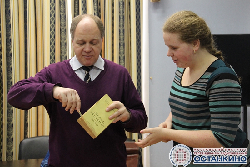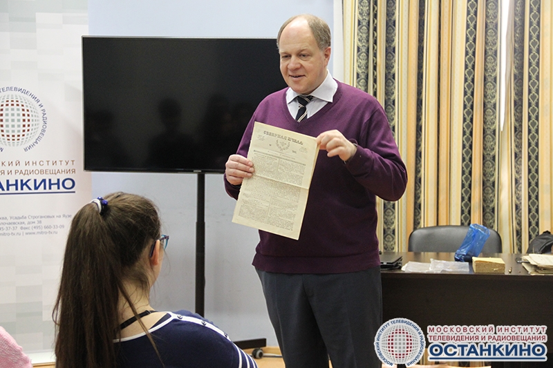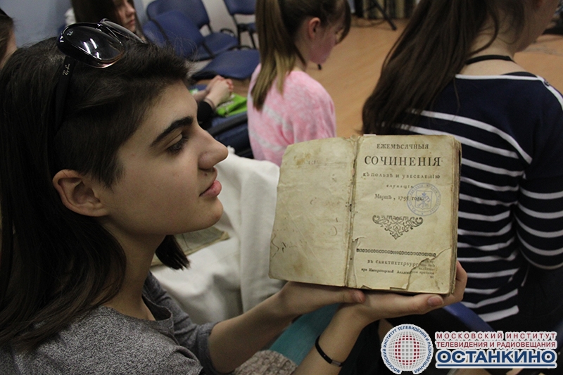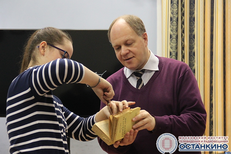 Григорий Владимирович начал с краткого экскурса в историю журналистики со времен Древней Греции до наших дней. Чтобы наглядно продемонстрировать академикам, как развивалась печатная журналистика, он принес с собой уникальные издания прошлых веков. Учащиеся даже попробовали разрезать страницы книги специальным ножом.