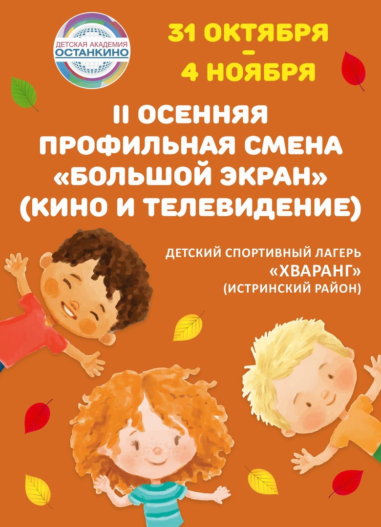 17.10.2016 - С 31 октября по 4 ноября 2016 года учащиеся Детской Академии «Останкино» отправятся на II Осеннюю профильную смену «Большой экран» (кино и телевидение)