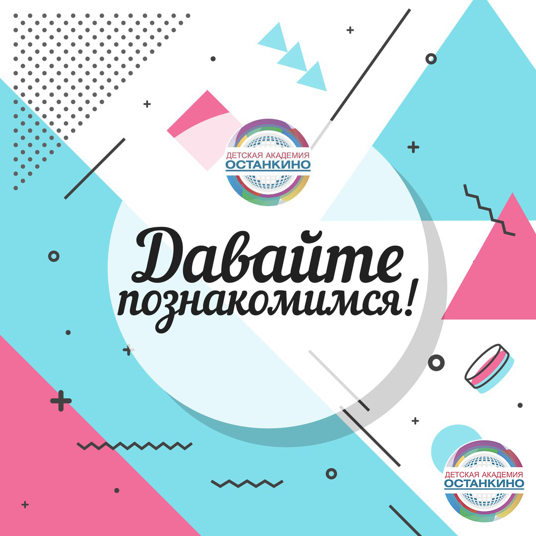 18.10.2017 - В Детской Академии «Останкино» состоялось традиционное мероприятие «Давайте познакомимся»«Давайте познакомимся» – это отличная возможность узнать больше друг о друге, об Академии, а также заявить о себе и своих талантах! Юные академики представили визитные карточки своих групп. Визитка группы – это видеосюжет, снятый самими учащимися, либо театральная постановка о жизни школьников в Академии. Творческие работы ребятам помогали готовить любимые преподаватели!