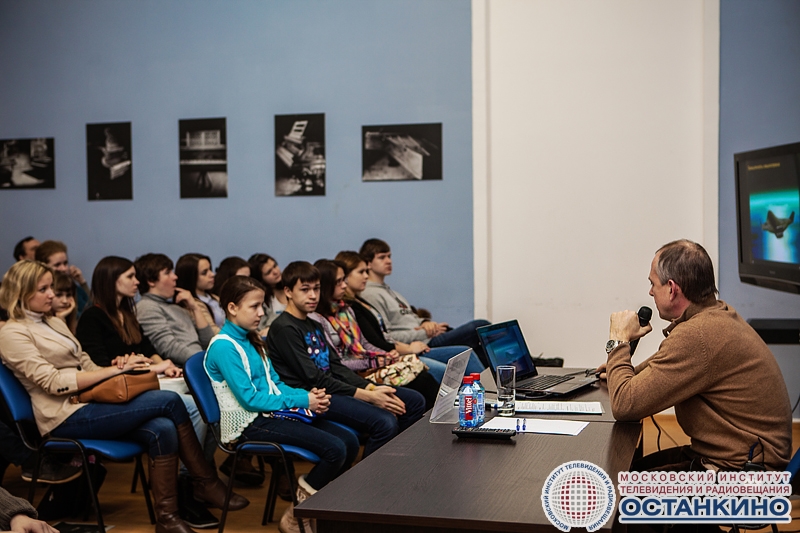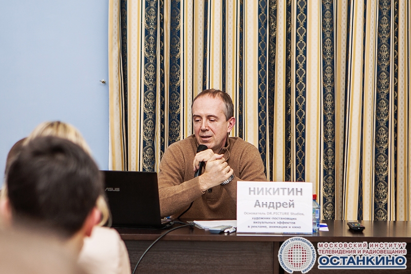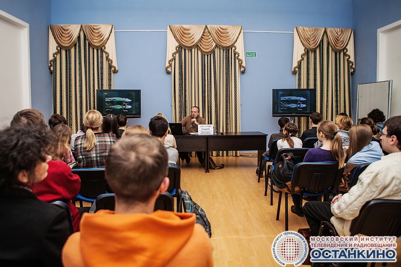 01.04.2013 - Все про компьютерную графику. Мастер-класс художника-аниматора Андрея НикитинаРассказать, как создаются компьютерные эффекты в кино к "митровцам" приехал сам Андрей Никитин – художник, который делал графику в нашумевших фильмах «Ночной дозор», «Дневной дозор» и многих других! Те, кто видел эти картины, не могли не обратить внимания на то, насколько масштабны, красивы и реалистичны эффекты в этих фильмах. Мастер-класс был для учащихся Детской Академии «Останкино», но послушать мастера пришли и студенты МИТРО, и преподаватели. Андрей Никитин подошел к делу основательно. Он рассказал и об истории компьютерной графики, начиная с первых упоминаний, и о том, где ее используют помимо кино, и о ее видах, и о том, как создаются эффекты – во всех деталях и подробностях. Рассказал также и о профессиях людей, которые участвуют в создании эффектах, и о самом процессе – пошагово. Как объяснил Андрей Никитин, коллектив, работающий над созданием и воплощением компьютерных эффектов, можно сравнить со съемочной группой кинофильма. И объем работы у них тоже сопоставим. В группе компьютерной графики для фильма работают специалисты 12-ти разных профессий (то есть, количество людей может быть гораздо больше). Этапов в производстве графики разной степени сложности – тоже примерно столько же. Андрей Никитин подробно остановился на каждом из них. Сначала составляется концепт графических эффектов (этап называется «концепт-арт»). На этом этапе прорисовываются образы всех желаемых героев и объектов. Затем следует этап превизуализации – своеобразные макеты графических фигур. После этого в дело вступают моделлеры – как понятно из названия специальности, эти люди моделируют графические фигуры. Если моделлеры сделали свое дело хорошо, то на следующем этапе – риггинге – в фигуры правильно вставят «косточки» и «суставы». Этот «скелет» обеспечивает гармоничное движение персонажей. Далее следует эффект анимации. Художников-аниматоров, по словам Андрея Никитина, часто можно застать кривляющимися перед зеркалом – они это делают, чтобы понимать, как что работает – какие мышцы лица напрягаются при улыбке, выражении недовольства, и так далее. Ну, а после того, как герой снабжен «скелетом» и «оболочкой», его временно «откладывают в сторону», и начинают заниматься огнем, облаками, пылью и прочими явлениями, которые придают картинке живость и схожесть с реальной съемкой. Андрей Никитин открыл секрет, что именно прорисовывание этих явлений делает видео наиболее реалистичным. Не менее важным является процесс лайтинга – то есть, постановка света, просчитывание, что и откуда будет светить, какие за счет этого будут тени и контрасты. Завершающий этап компьютерной графики – композитинг. Он предполагает исправление всех недочетов предыдущих этапов. Композитингом занимаются, соответственно, компОзиторы (с ударением на «О», не путайте с композИторами).